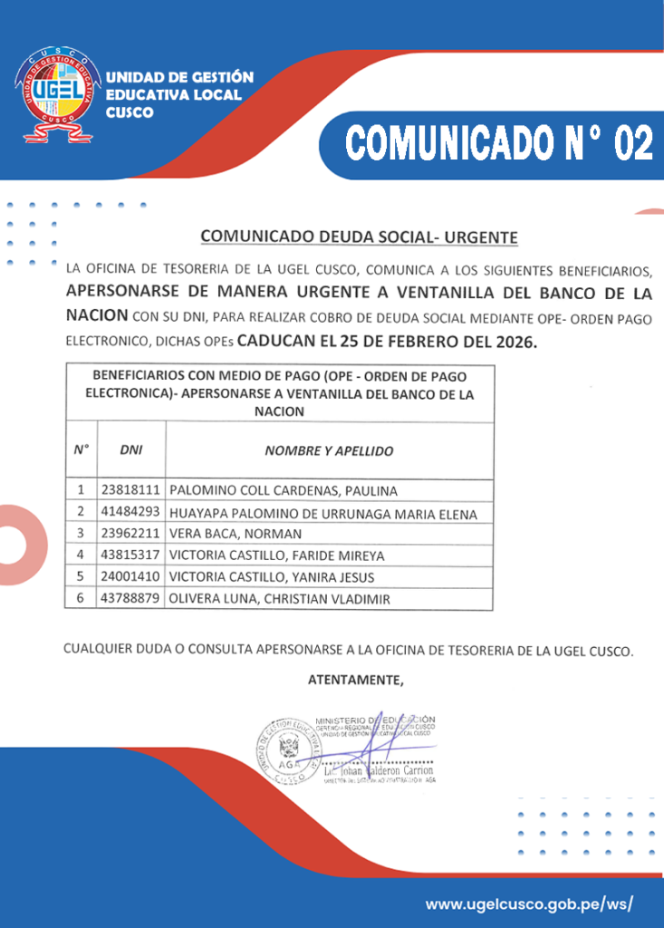 OFICIO MULTIPLE N° 014-2026-GR-C/ GEREDU-C/DUGEL-C