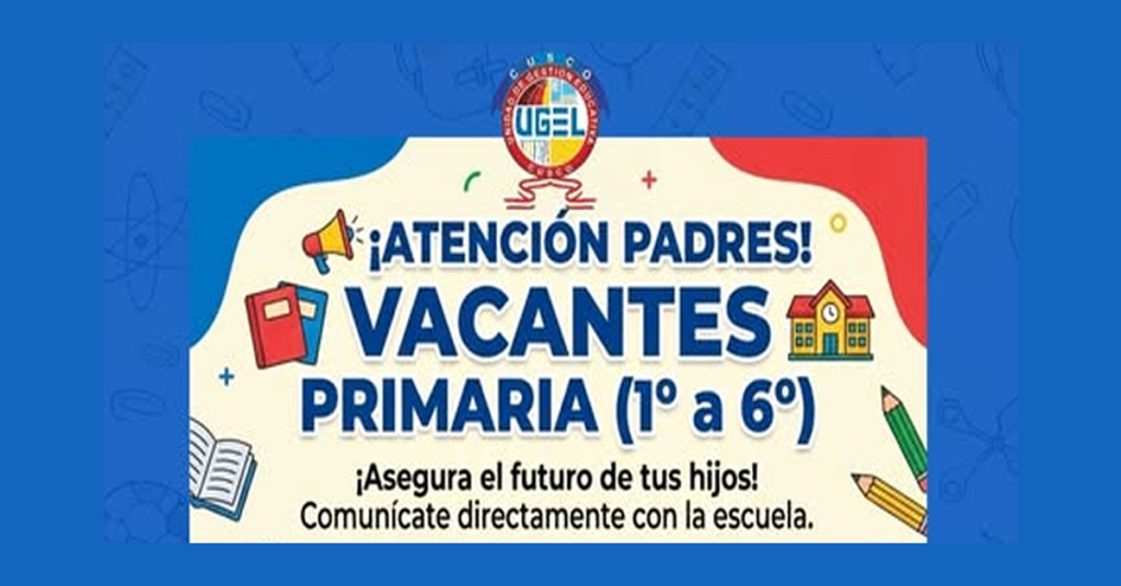 ¡ATENCIÓN PADRES DE FAMILIA! – VACANTES DISPONIBLES – EDUCACIÓN PRIMARIA (1.° a 6.° GRADO)