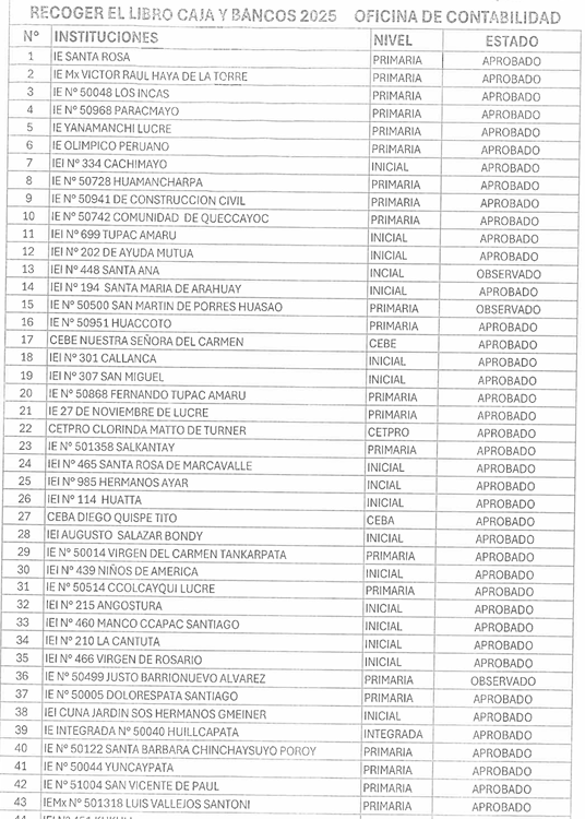 INSTITUCIONES EDUCATIVAS DEL AMBITO DE LA UGEL CUSCO QUE DEBEN RECOGER LIBRO DE CAJA Y BANCOS 2025 Ver…