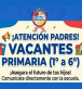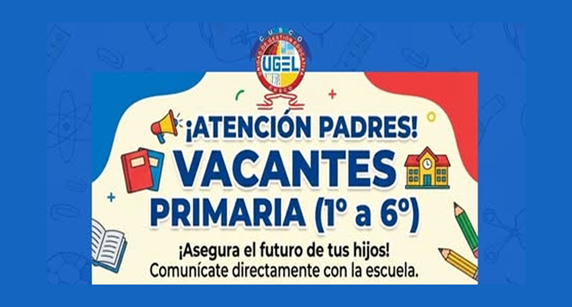 ¡ATENCIÓN PADRES DE FAMILIA! – VACANTES DISPONIBLES – EDUCACIÓN PRIMARIA (1.° a 6.° GRADO)