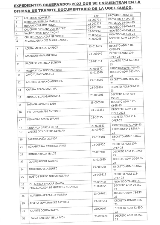 17 Feb 2023 Ugel Cusco Comunicados 17 de febrero de 2023 COMUNICADO DE TRAMITE DOCUMENTARIO ASUNTO: EXPEDIENTES 2023-OBSERVADOS QUE SE ENCUENTRAN EN LA OFICINA DE TRAMITE DOCUMENTARIO DE LA UGEL CUSCO LEER MASLeer Más