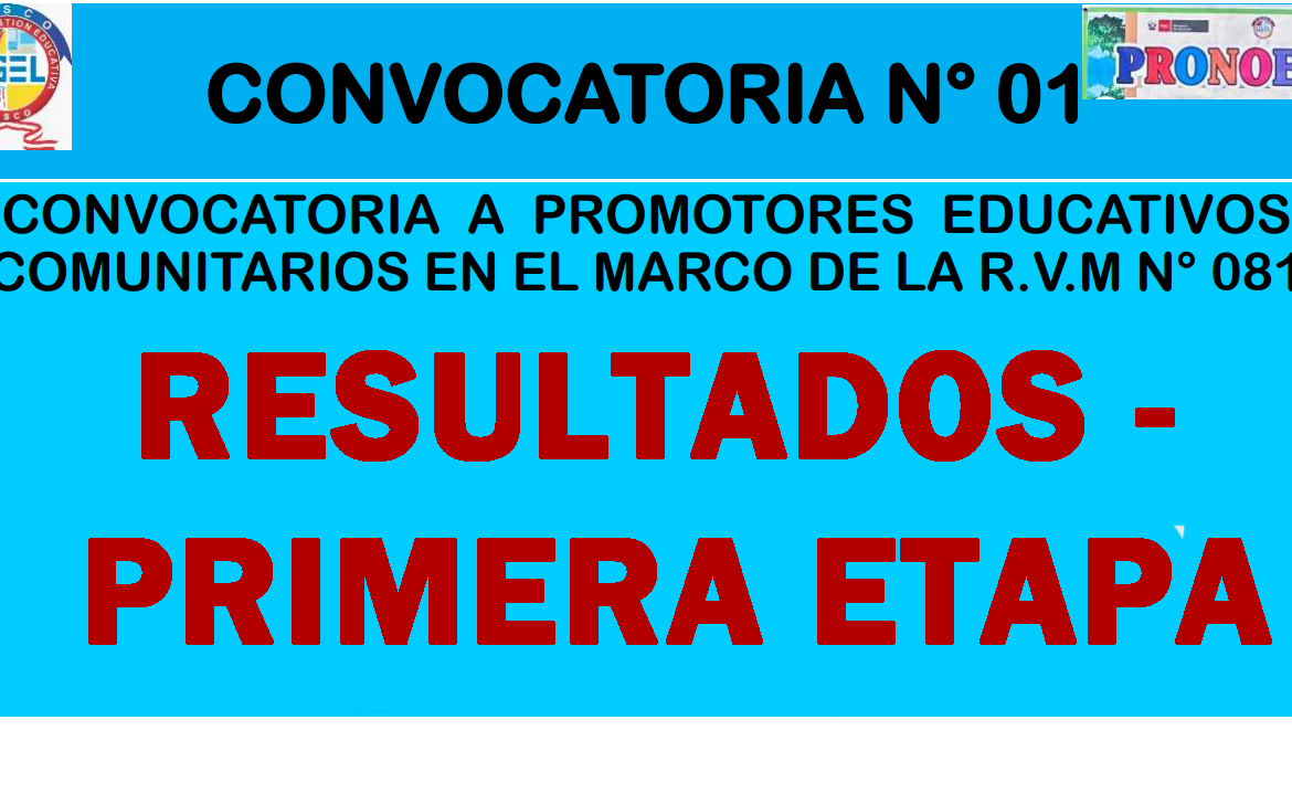 18 Nov 2025 Ugel Cusco Comunicados 18 de noviembre de 2025 RESULTADOS DEL PROCESO DE SELECCION PRIMERA ETAPA – CONVOCATORIA PRONOEI VER RESULTADOS >>>Leer Más