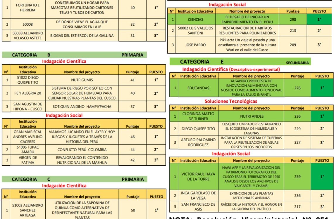 25 Sep 2025 Ugel Cusco Comunicados 25 de septiembre de 2025 RESULTADOS FENCYT EUREKA 2025 – UGEL CUSCO Un verdadero encuentro de ciencia e innovación: 311 proyectos, 622 estudiantes, 312 docentes, 48 jurados, 25 especialistas y más de 20 Leer Más