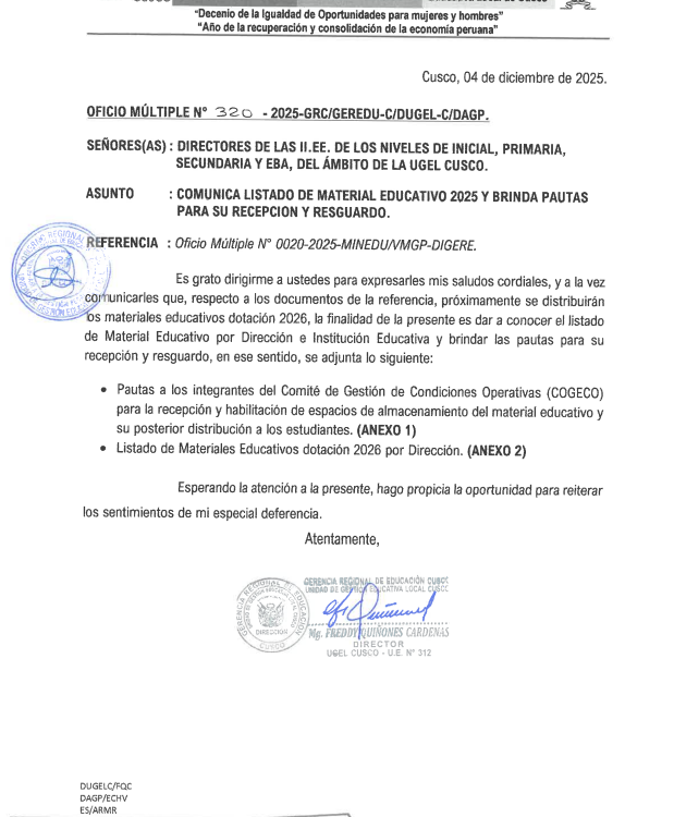 Lunes a Viernes de 8:30 a 13:00 - 14:00 a 16:00 +51 (084) 773609