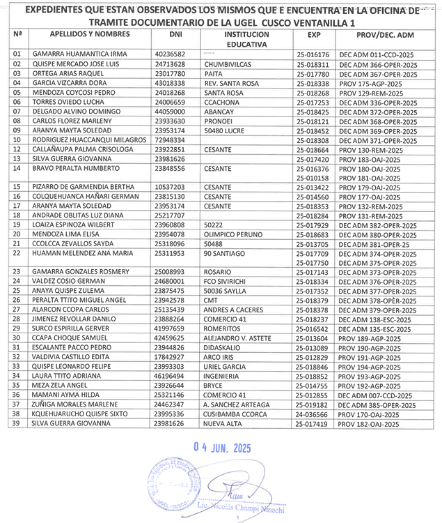 05 Jun 2025 Ugel Cusco Comunicados 5 de junio de 2025 COMUNICADO – OFICINA DE TRAMITE DOCUMENTARIO Anterior Noticia Siguiente Noticia