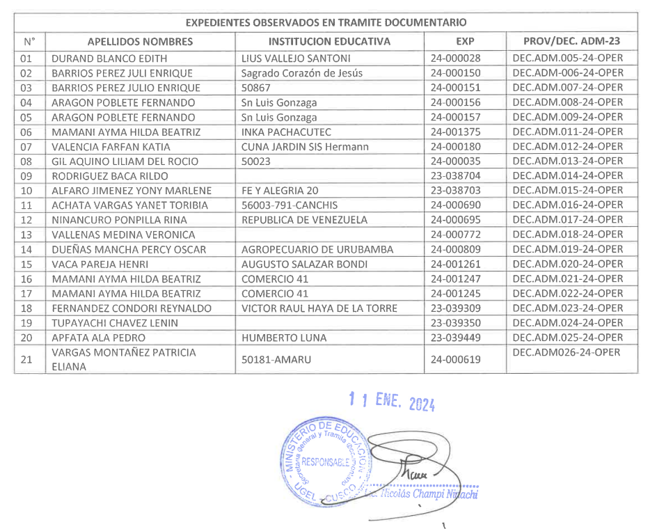 11 Ene 2024 Ugel Cusco Comunicados 11 de enero de 2024 COMUNIDADO – TRAMITE DOCUMENTARIO EXPEDIENTES OBSERVADOS EN TRAMITE DOCUMENTARIO. Anterior Noticia Siguiente Noticia