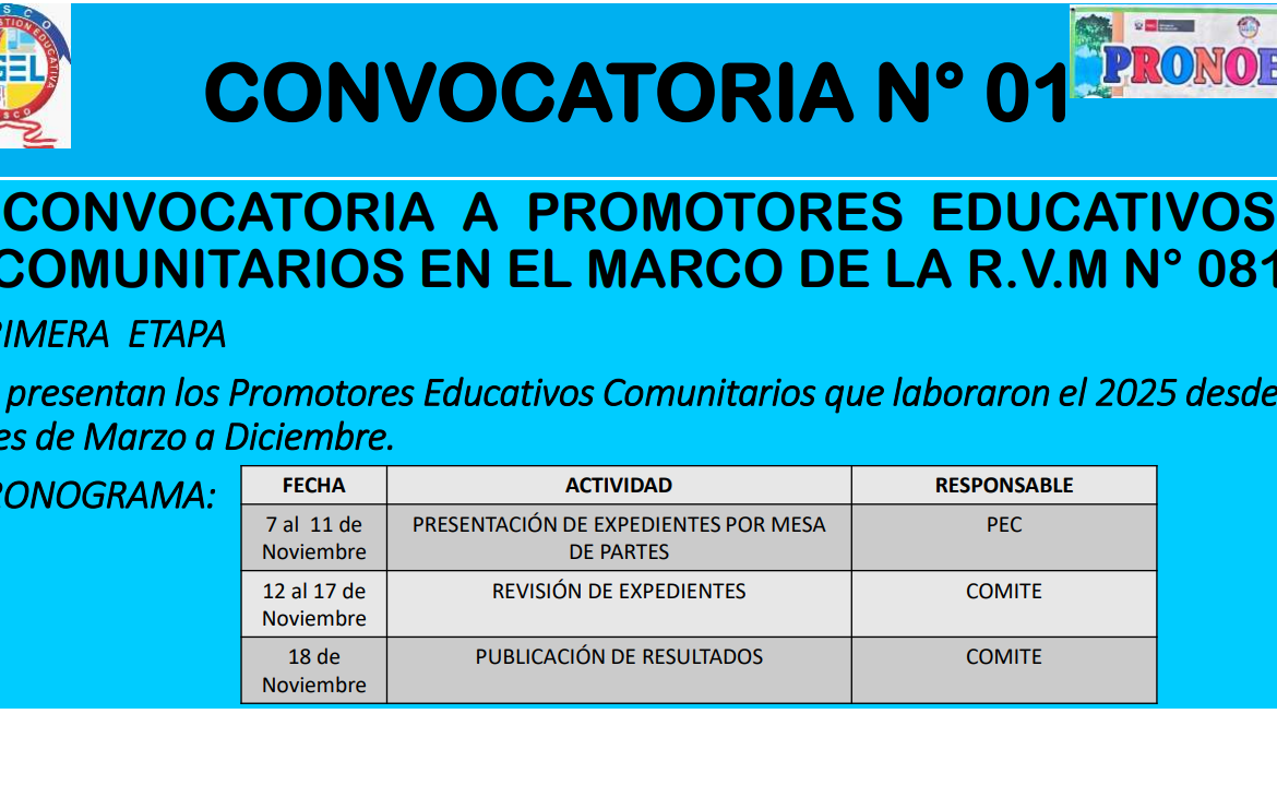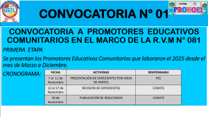 06 Nov 2025 Ugel Cusco Comunicados 6 de noviembre de 2025 CONVOCATORIA – PRONOEI Anterior Noticia Siguiente Noticia