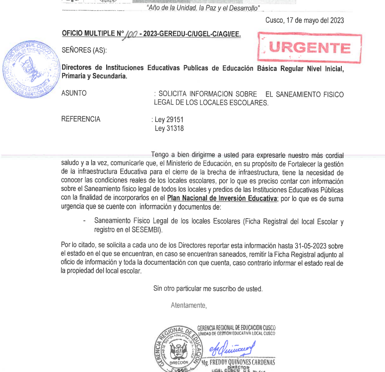OFICIO MÚLTIPLE N° 100-2023-GEREDU-C/UGEL-C/AGI/EE