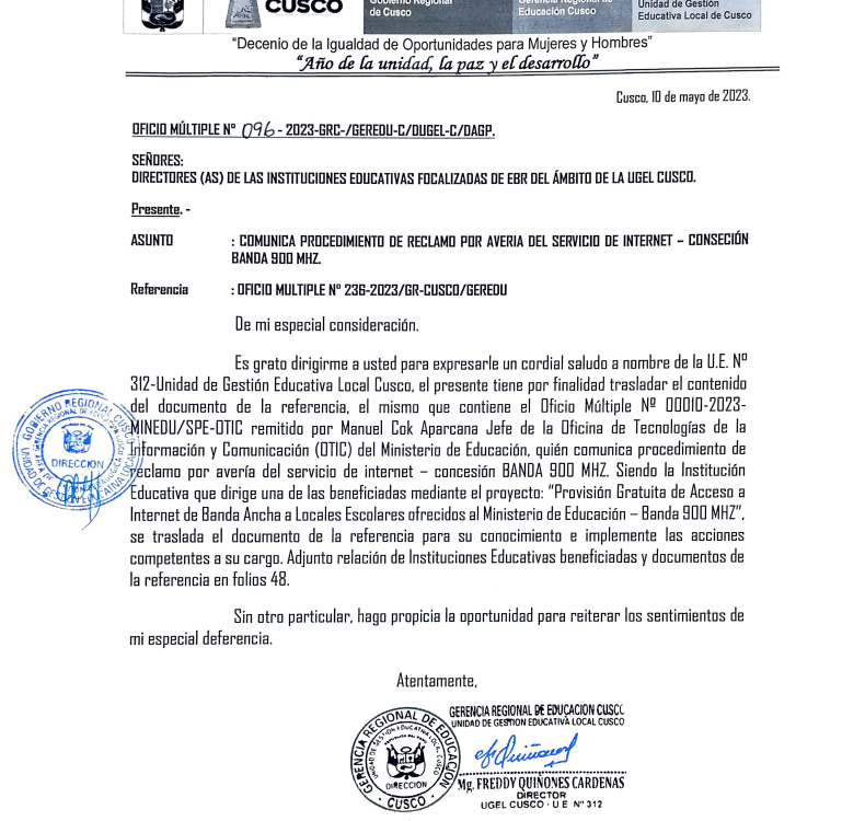 OFICIO MULTIPLE N°096-2023-GRC-/GEREDU-C/DUGEL-C/DAGP